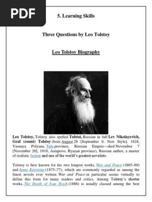 Learning Skills Tula Fiction Pdf Leo Tolstoy